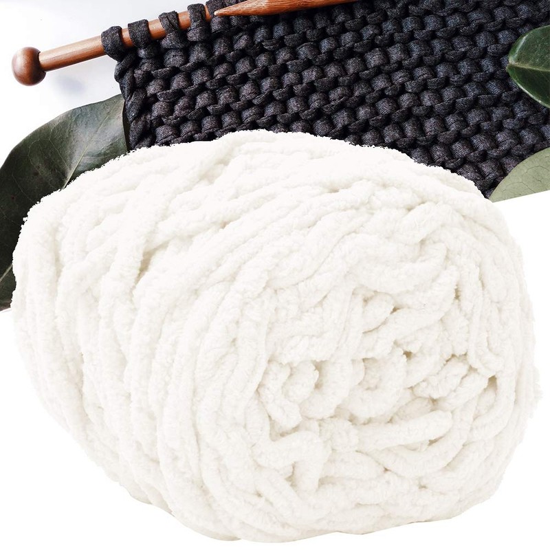 Hilo de tira de hielo grueso simple Hilo rápido Aguja de tejer Manta tejida Línea de zapatillas con un ganchillo para tejer bufandas(leche blanca)