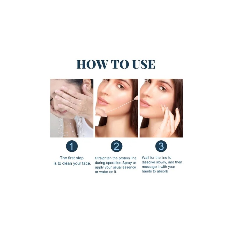 Tamaño: 13,2 x 6,2 cm/5,19 x 2,44 pulgadas. Características: uso: los hilos de seda de colágeno permiten una fácil aplicación. Para levantar el hilo, los hilos de colágeno se incorporan a la piel con ácido hialurónico. Después de 15 a 20 minutos, el tratamiento ya está hecho.