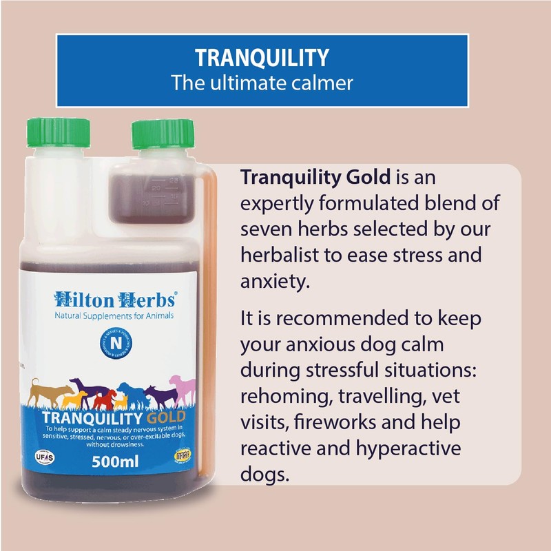 • BENEFITS: Tranquility is recommended to keep your anxious dog calm during stressful situations: rehoming, travelling, vet visits, and fireworks. This natural formula helps reactive and hyperactive dogs.