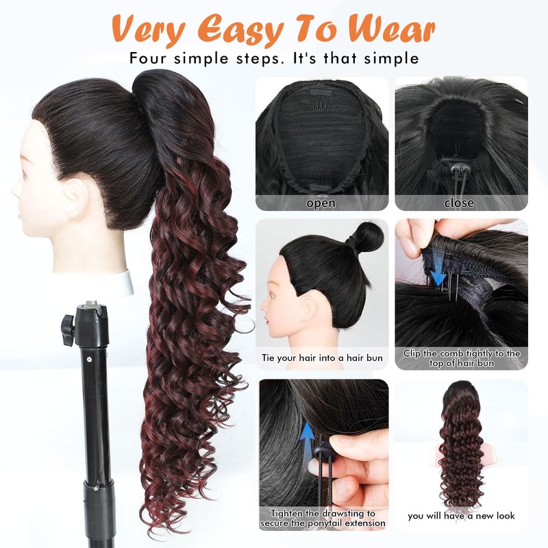 - EASY TO USE AND CARE: Simply tie your hair into a small bun, open the drawstring, place the ponytail extension on top, clip it into place, and tighten the drawstring to secure it. In just one easy step, you can add instant volume and length to your hair, effortlessly transforming your hairstyle. To prevent tangling, shake the ponytail extension after opening the package, use a spray bottle with a care solution to gently spritz the ponytail extension
