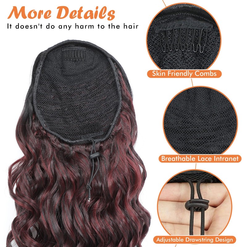 - MATERIAL: Our 24-Inch curly drawstring ponytail is made of High-quality high-temperature synthetic silk that makes hair natural and durable, and This ponytail adopts a comfortable and breathable inner net design and no irritation to the skin