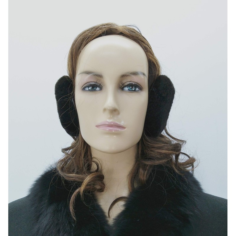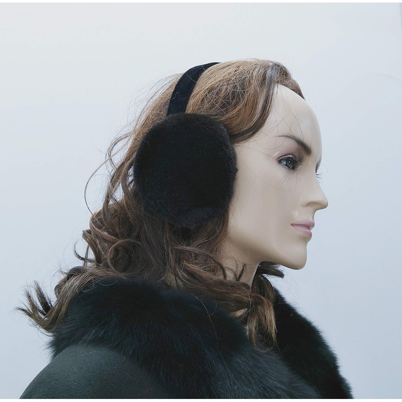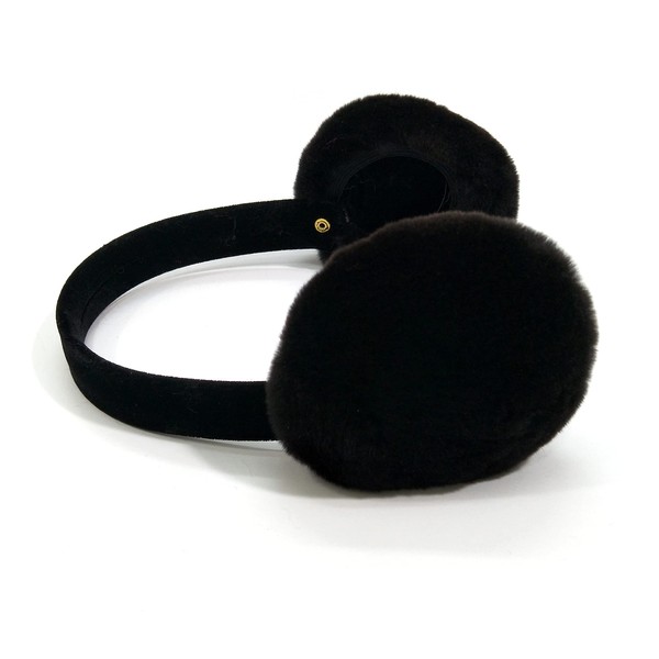 Hima 100% Real Sheared Mink Fur Earmuffs Made in US (Sheared Black)