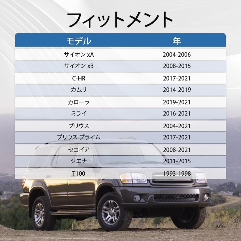 - 【Fitment】:Fits Toyota Products, Fits the Following Models: 2004-2006 Scion xA, 2008-2015 Scion xB, 2017-2021 C-HR, 2014-2019 Camry, 2019-2021 Corolla, 2016-2021 Milai, 2021 04-20 21 Prius, 2017-2021 Prius Prime, 2008-2021 Sequoia, 2011-2015 Sienna, 1993-1998 T100