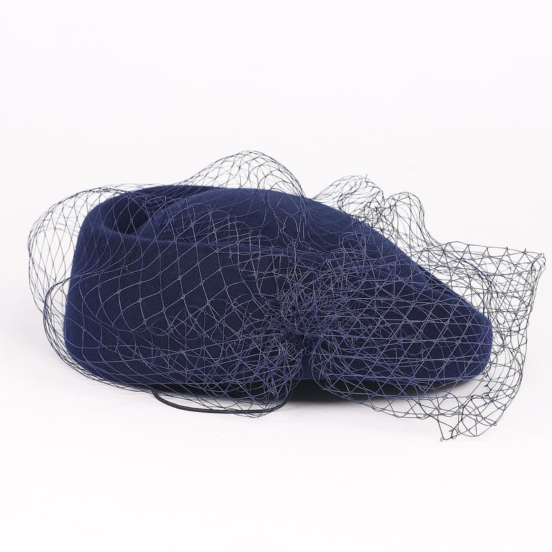 HIMESPORT Navy Wool Felt Fascinator Hats for Women Ladies Lady Elegant Tea Party Dress Beret Derby Fedoras Pillbox Hat with Bowknot