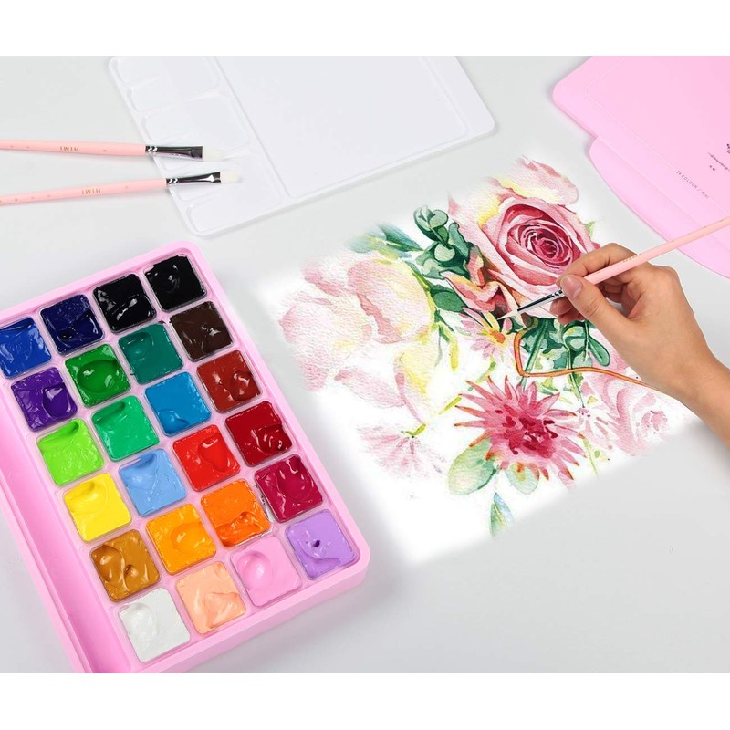 HIMI Gouache Paint Set 24 Vibrant Colors Non Toxic Paints Jelly Cup Design with Palette Paint Brushes Portable for Artist Canvas Painting Watercolor Papers, Rich Pigment, 30ml/Cup