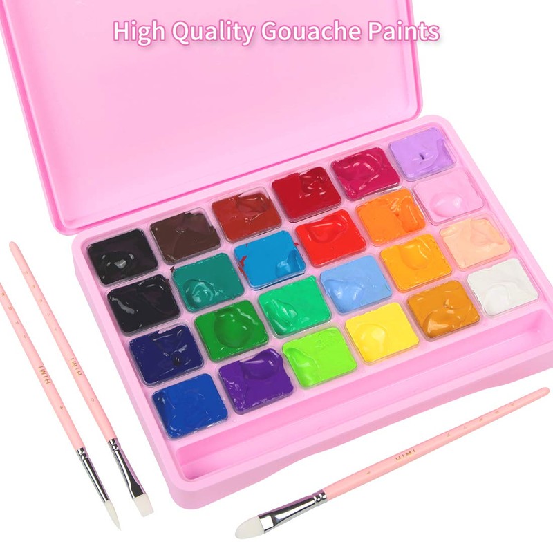 - 24 Vibrant Colors- The premium gouache paint set with 24 unique eye catching vibrant gouache colors will provide you with vivid colors and better selections to bring your artwork to life, ideal for professional artists, young aspiring artist, painting lovers, teens and kids painting learning
