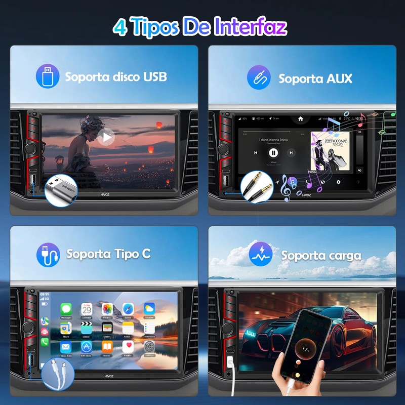 - 【Sonido de Alta Calidad & Pantalla de 7 Pulgadas】: Estereo tiene efectos de sonido EQ que ofrecen sonido envolvente que se puede ajustar en varios modos de sonido. Pantalla 7 pulgadas grande puede darte una experiencia visual impresionante. El autoestreo cuenta con siete colores de luces que permiten ajustar el estilo a sus preferencias, ofreciendo diferentes experiencias visuales para evitar la fatiga estética.