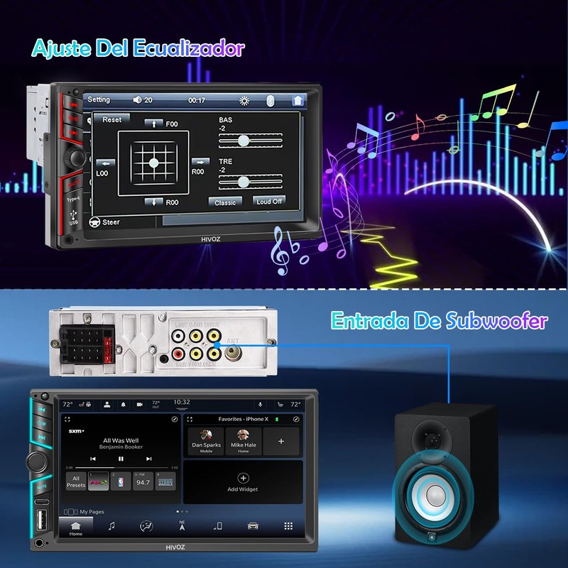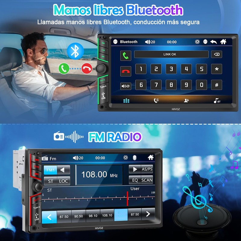 - 【Bluetooth y manos libres】Conecta tu smartphone o dispositivo Bluetooth de forma estable a través de la función Bluetooth incorporada, soporta llamadas manos libres para resolver tus problemas de llamadas mientras conduces, ¡para que puedas disfrutar de una excelente experiencia musical!