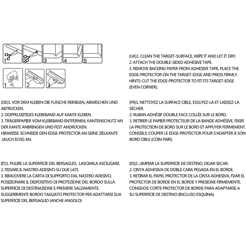 - L-profile edge protection strip is practical and easy to install and remove. With the included double-sided tape, the anti-collision strip can be easily applied to the edge of your table, desk, bed, TV cabinet, and anywhere around your house.