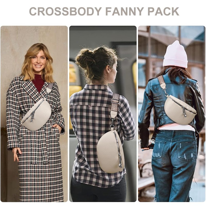 HIMS Crossbody Bag Damen Breiter Gurt, Umhängetasche Damen Klein, Bauchtasche Damen Leder Geldbörse, Damenhandtasche mit abnehmbarem Schulterriemen