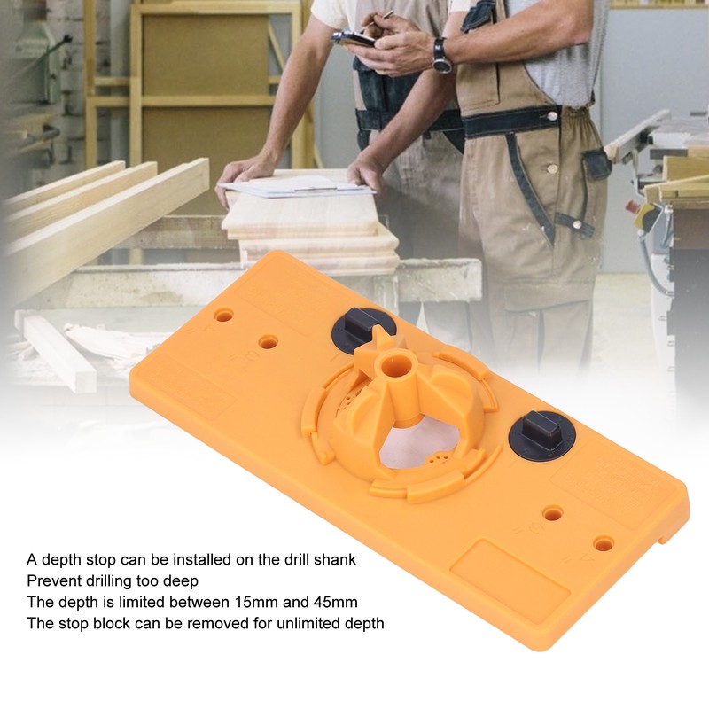 1、Depth Stop: A depth stop can be installed on the drill shank to prevent drilling too deep. The depth is limited between 15mm and 45mm. The stop can be removed to obtain unlimited depth. 2、Specially Designed Pointed Tip: The pointed tip is specially designed to pass through the hole cleanly, very suitable for drilling concealed hinges and door locks. 3、Hinge Drilling Fixture: With the hinge drilling fixture, you can easily and conveniently immerse the cup hole on the wardrobe door or table. 4、Application: Suitable for drilling machines, pistol drills, bench drills, vertical drilling machines, hand held electric drills, vertical electric drilling machines, etc. 5、Screw Distance: Has the function of drilling holes for hinge screws. The distance between these screws is 46mm, 48mm or 52mm.