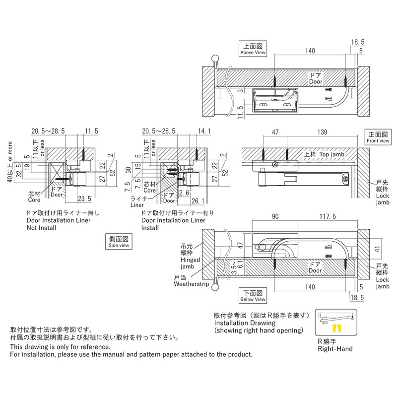 - ※Recommended door weight: 57-88 lbs