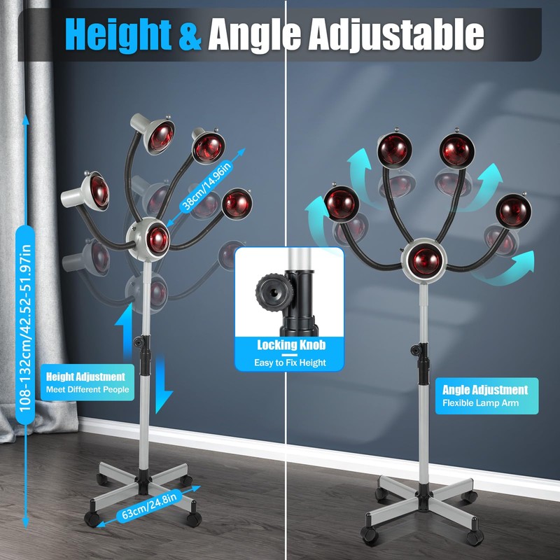 HinLIaDa 5 Head Infrared Heat Lamp, 750 W Red Light Heat Therapy Hair Color Processing Drying Adjusting Height Hair Dryer Stand Styling Perming Dryer Hair Salon Equipment with Rolling Wheels