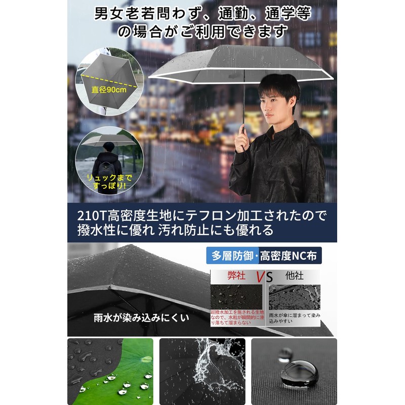 - Incredibly Super Water Repellent Teflon Treatment: Made of super high-density Teflon polyester material, this folding umbrella is made of a standard terylene material and has excellent water repellency than men's. The folding umbrella is made with a Teflon coating that is super water-repellent, so you can easily shake the water droplets off after closing the umbrella, and it won't cause any bothering by people on public places such as trains. Therefore, it drains well and is easy to store by simply shaking it lightly after inserting the umbrella. An indispensable item for rainy season. The umbrella cloth is wrinkle resistant and will always keep you looking fashionable. Folding Umbrella, Men's, Lightweight, Umbrella Cover is made of fine hair chenille fabric with excellent moisture absorption, and the exterior is a double fabric composed of thin Oxford fabric and PVC material