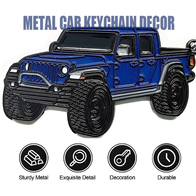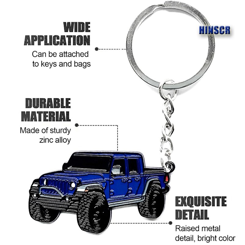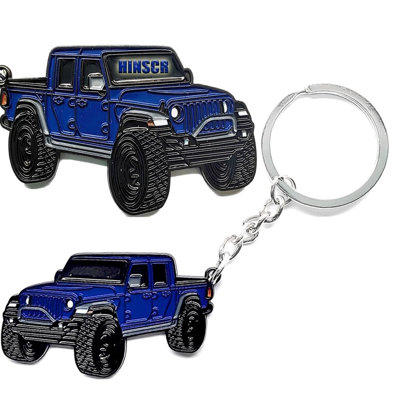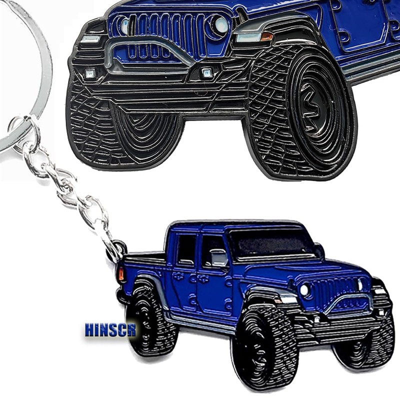 HINSCR Double-Sided Car Metal Keychain for Jee p Gladiator, Blue Enamel Key Ring Car Keys Accessory(Blue)