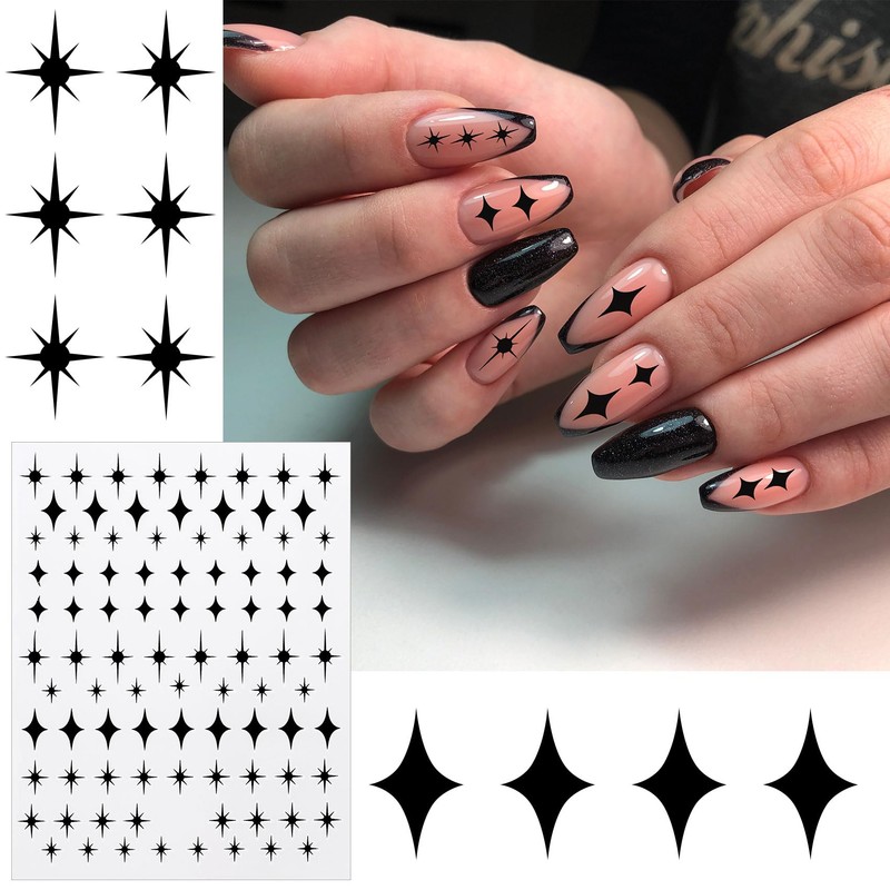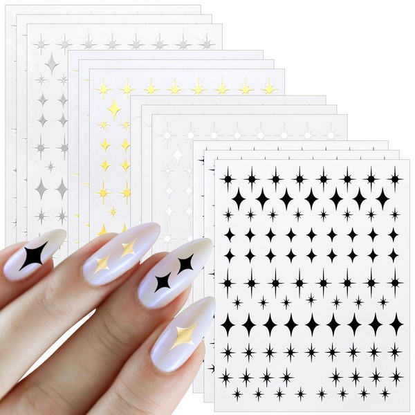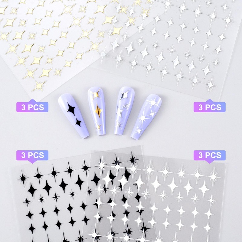 - 【Package Includes】The package comes with 12 sheets star nail stickers in gold, silver, black and white, each color has 3 sheets.