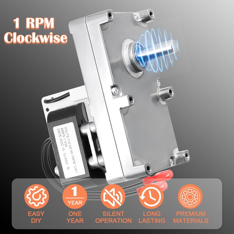 • ► Quiet Operation - Upgraded this kozi baywin auger motor minimizing noise levels. The auger motor's shaft rotates clockwise and powers the agitator shaft to mix the pellets. If your unit needs different female/male spade clips, these can be removed and changed out.
