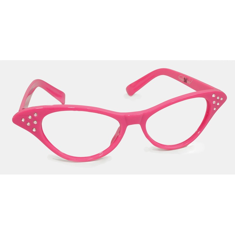 - CUTE 1950S CAT-EYE GLASSES: Share your retro flair by wearing these cute cat-eye glasses. They’re shaped just like the vintage glasses of the 1950s. You can choose from 6 colors, including black, hot pink, light pink, purple, red, or teal. These glasses will complete your 1950s look. Just pair them with a poodle skirt, and you’re all set! Order them for your little girl’s costume today!