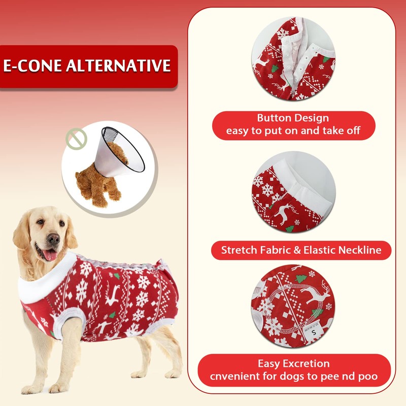 Hipet Dog Surgical Recovery Suit for Abdominal Wounds or Skin Diseases Christmas Dog Onesie for Surgery E-Collar & Cone Alternative Anti-Biting Lick Wound