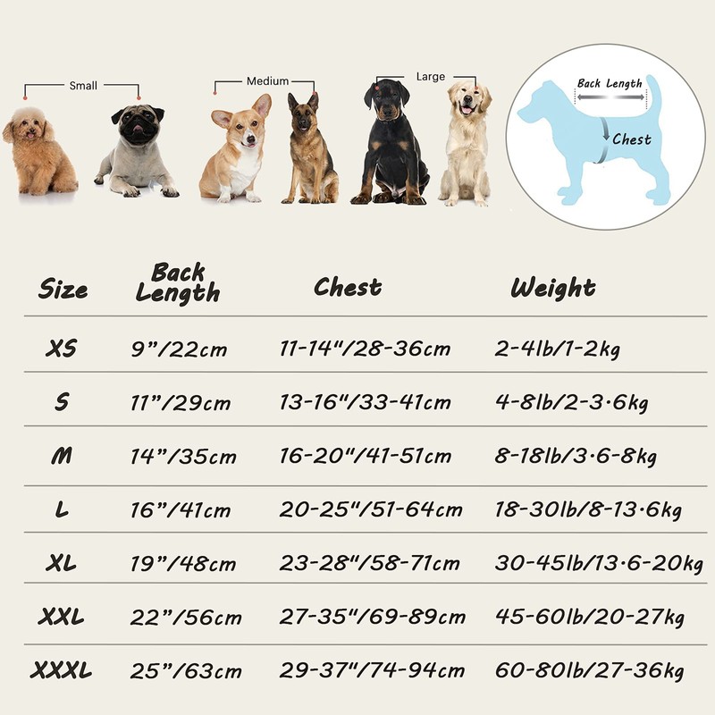 - [Elastic & Breathable Material]: Made of high elasticity and light-weigh polyester fabric, cool in summer but also keep warm in winter. Full body dog shirt (XS-3XL) for small, medium and large dogs cats breeds.