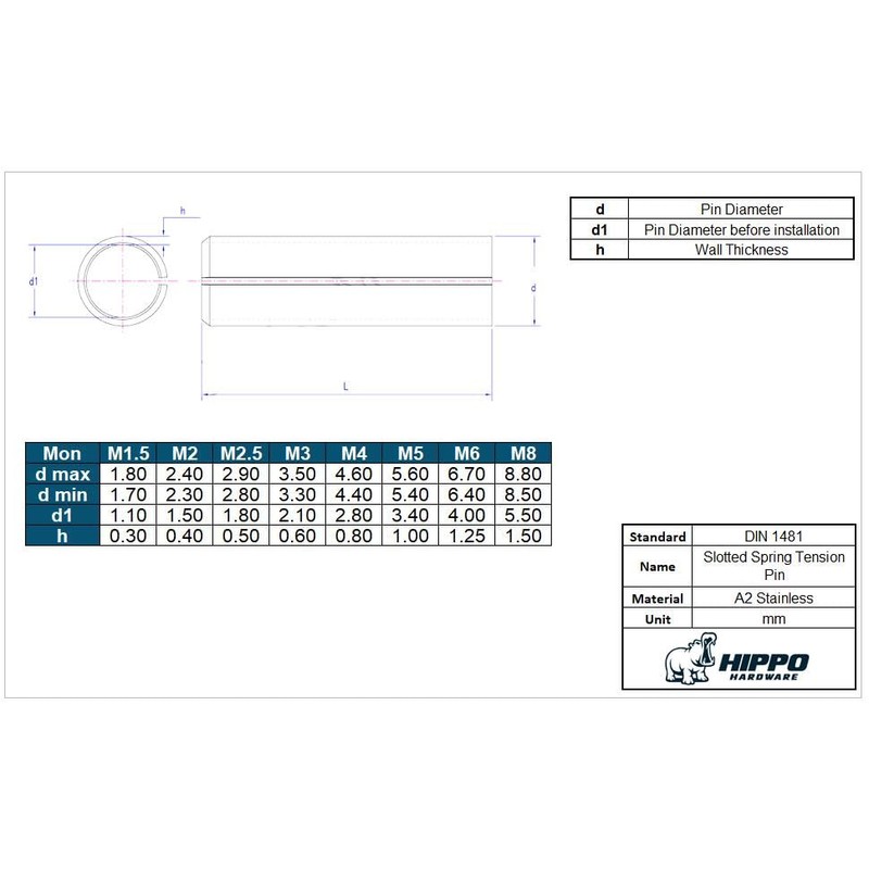 - Type: Slotted Spring Tension Pin
