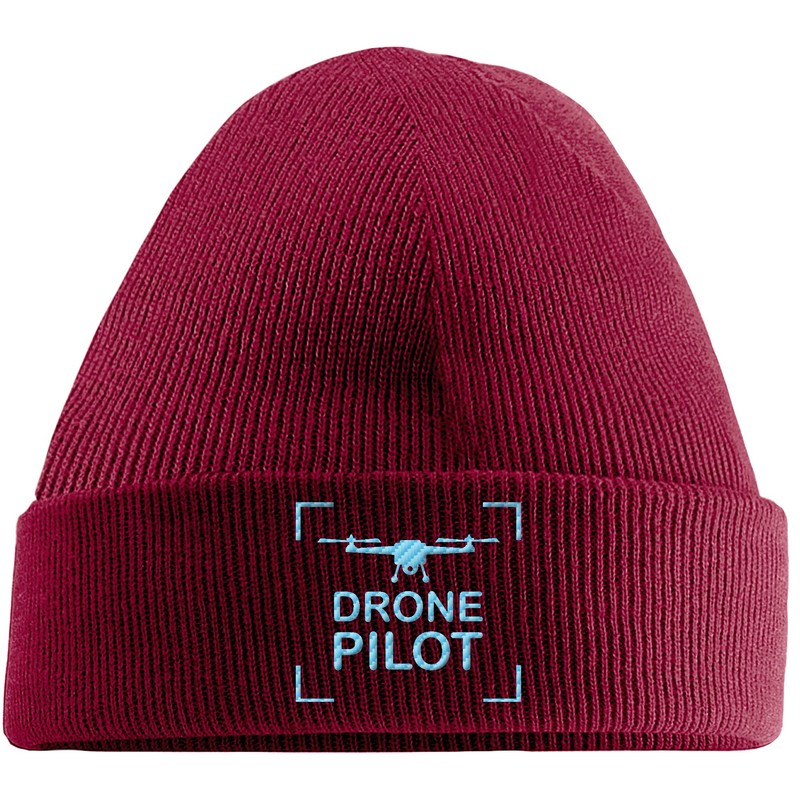Hippowarehouse Drone Pilot Embroidered Beanie Hat Red with Baby Blue Stitch