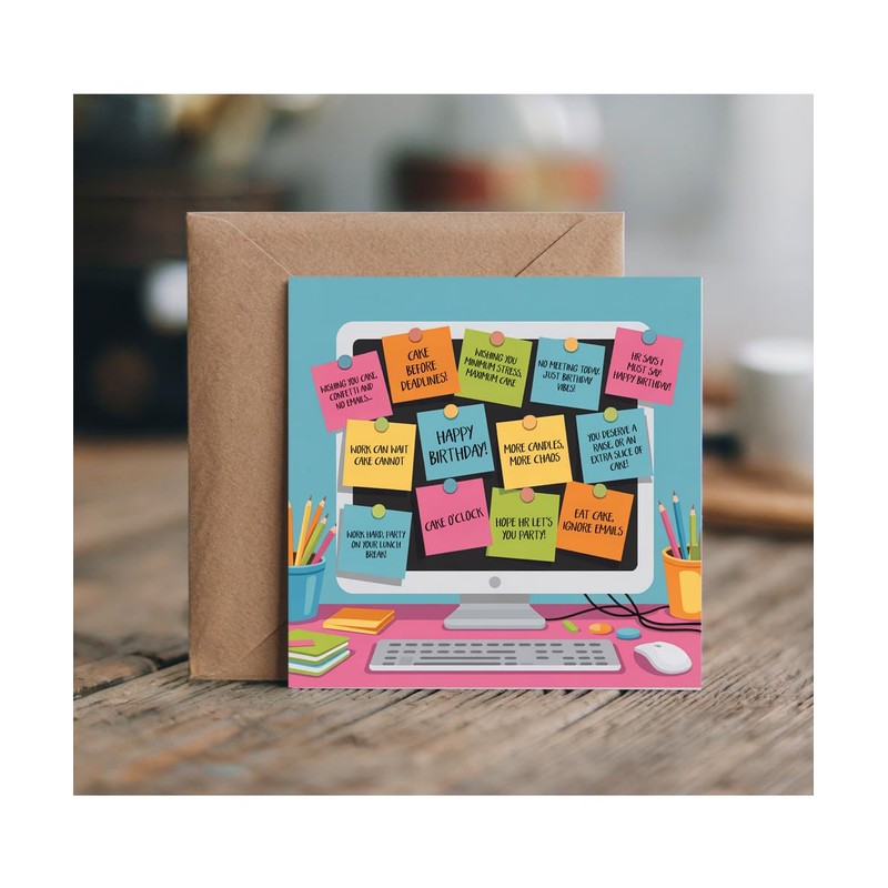 Hippowarehouse Happy Birthday colleague post it notes Personalised Card. 15cm x 15cm with envelope for him for her Funny Cards for Men and Women Blank inside option