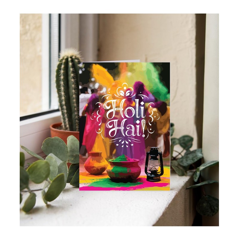 Hippowarehouse Holi Hai coloured powder Personalised Card A5 with envelope for him for her Funny Cards for Men and Women Blank inside option