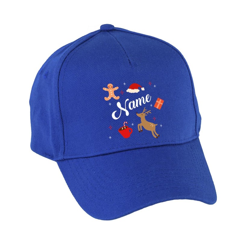 Hippowarehouse Perso Reindeer gingerbreadman Premium Printed 5 Panel Baseball Cap hat OneSize Adults Royal Blue