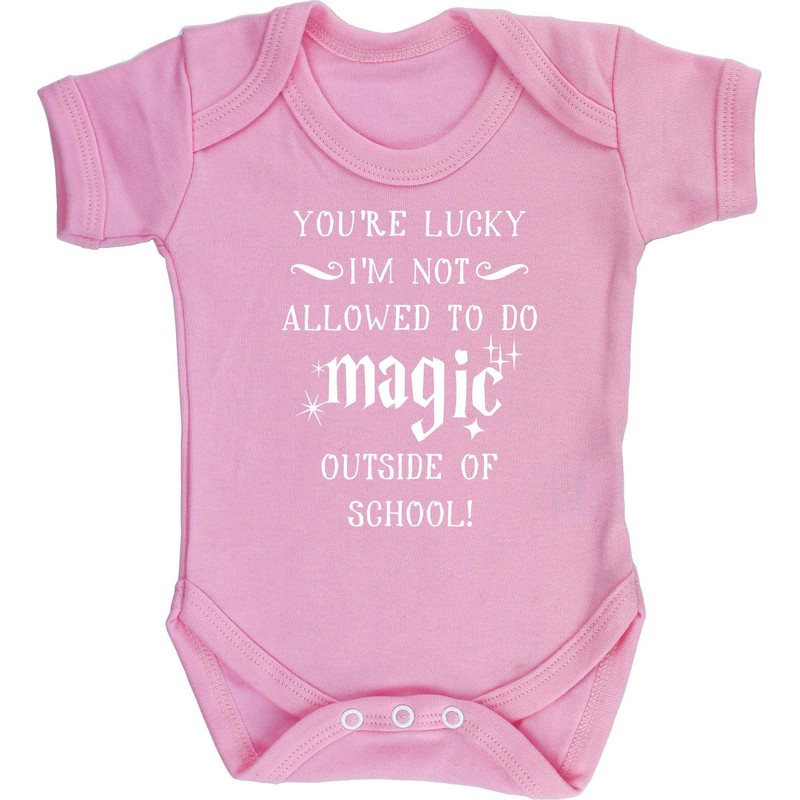 Hippowarehouse You're Lucky I'm Not Allowed to Do Magic Outside of School! Baby Vest Bodysuit (Short Sleeve) Boys Girls Light Pink