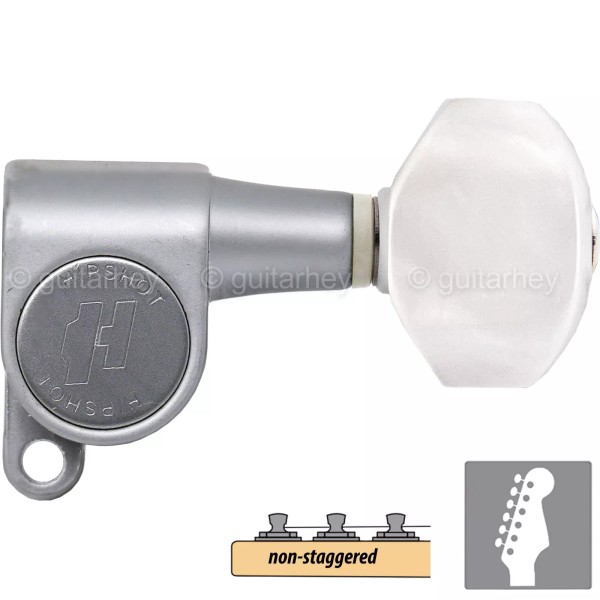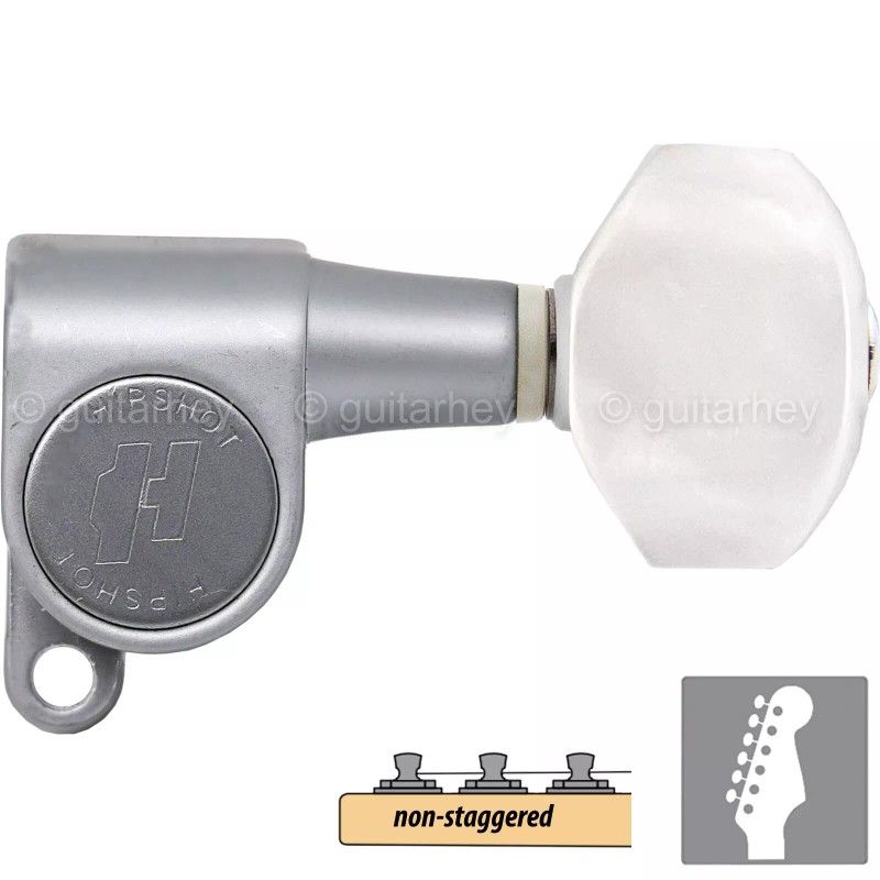Hipshot NEW Hipshot Classic Mini Tuners 6 in line NON-Staggered PEARL Buttons - SATIN
