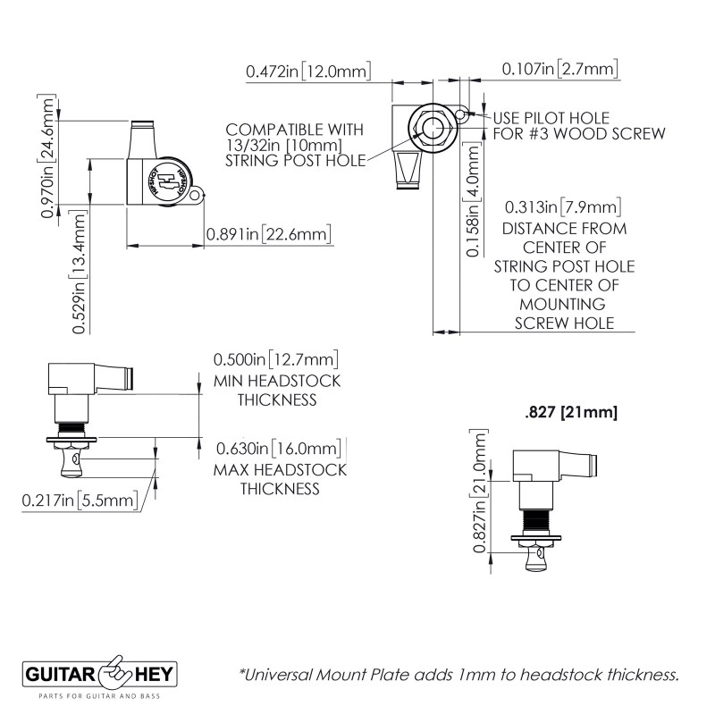 - Included UMP™ (Universal Mount Plate) for 6 Inline headstocks fits guitars with 6 tuners on a side. No drilling or special tools required