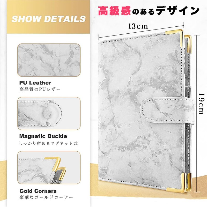- (Easy to carry) A6 sized binder that can be easily stored in your bag or carried around. It can store cards, passport, pen, etc. and is multi-functional and easy to handle. Also, because of the loose leaf design, the cover can be used as a separate notebook in place
