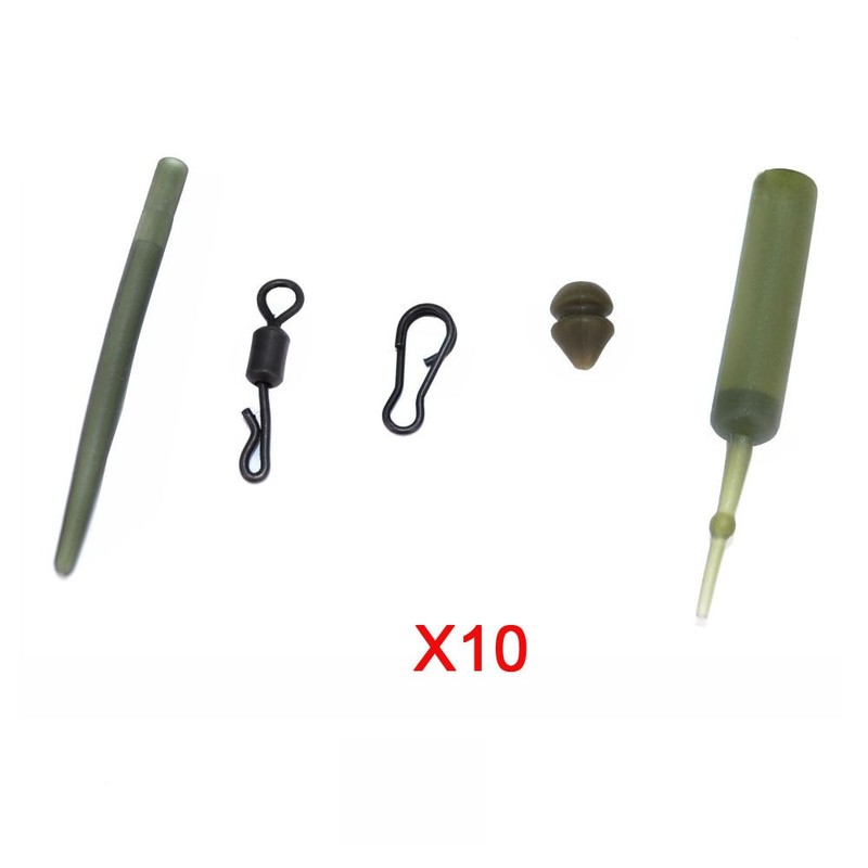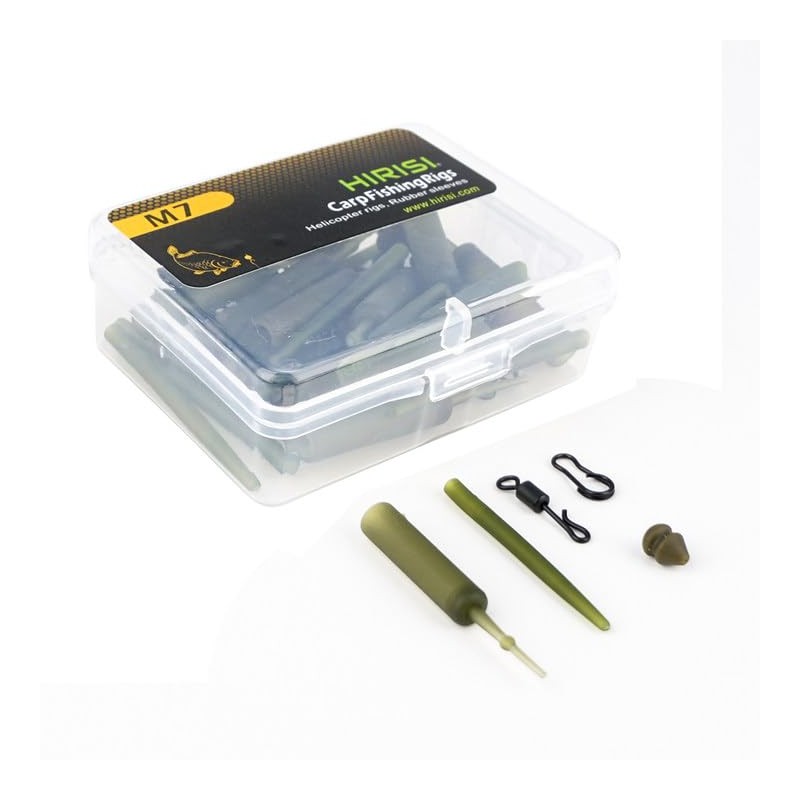 Hirisi Tackle 10 Sets Helicopter Rigs for Hair Rigs, Safety Clips, Hooks, Swivels, Rubber Buffer (Carp Fishing)