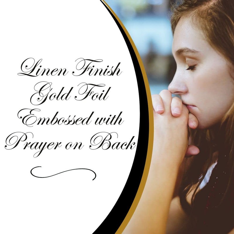• Design and Style; Beautified artwork by world renowned Fratelli Bonnella, gold foil embossed on linen finish stock paper with decorative edge on front and prayer on the back.