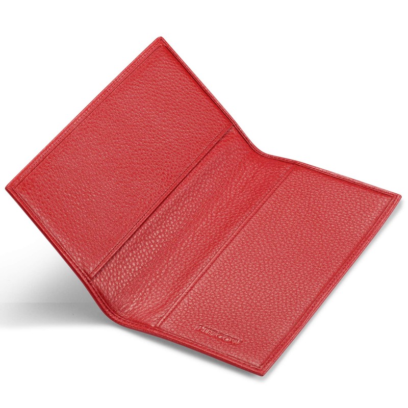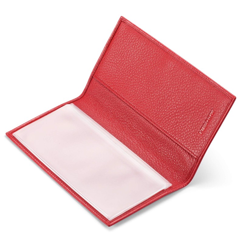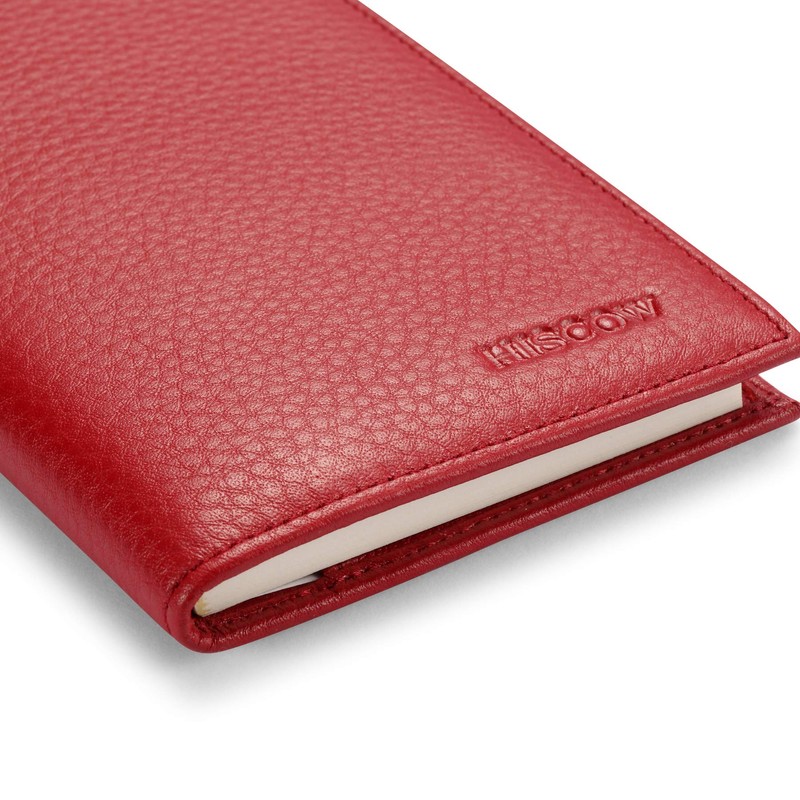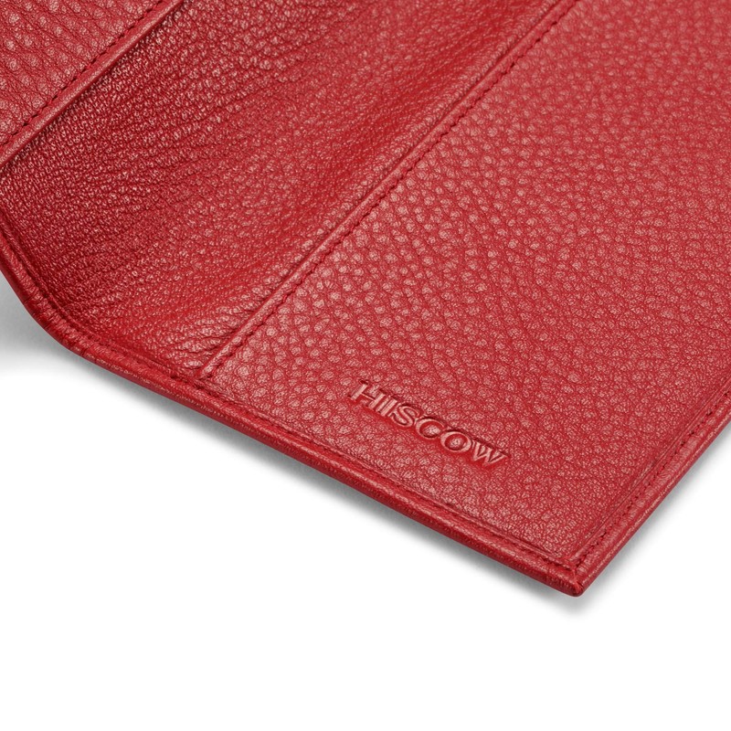HISCOW Minimalist Checkbook Cover - Full Grain Leather (Pebbled Red)