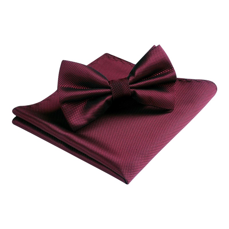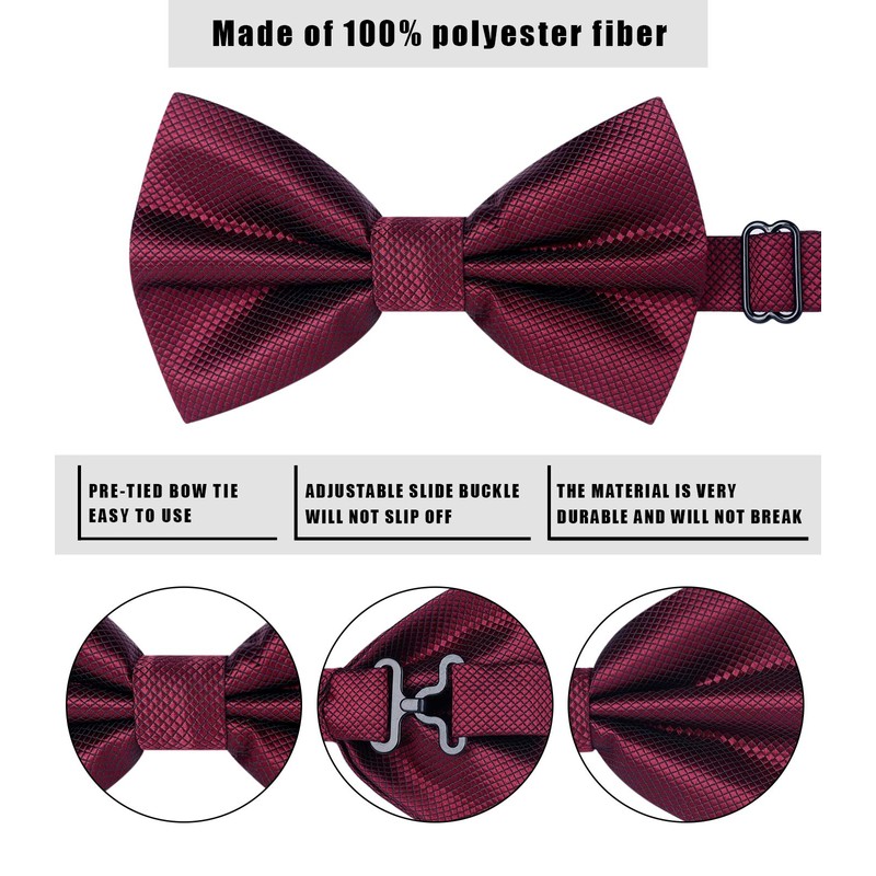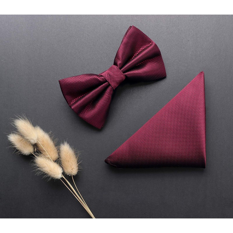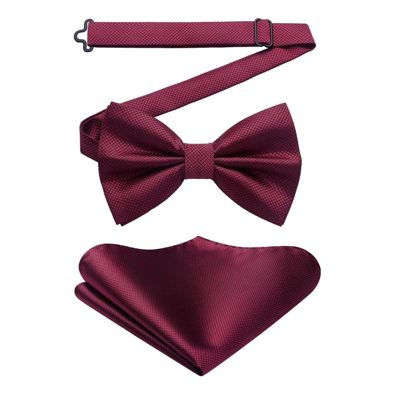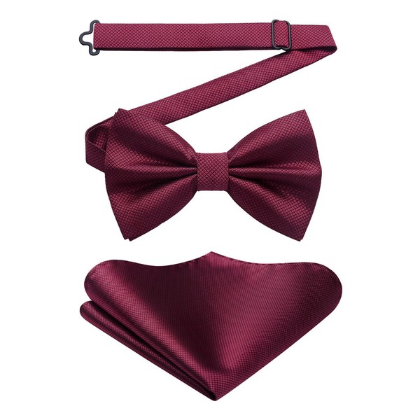 HISDERN Bow Tie with Pocket Square for Men Plain Adjustable Tuxedo Bow Tie for Wedding Party, C Bordeaux 2