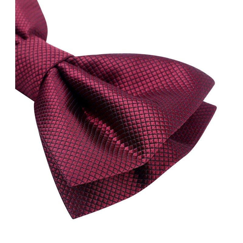 - Fly dark red men: bow tie length 4.72 inches and width 2.75 inches. The bow tie strap length can be extended from 9.8 inches to 20.47 inches. Pocket square size: 12 inches x 12 inches. Package includes: bow tie with handkerchief set and simple gift box