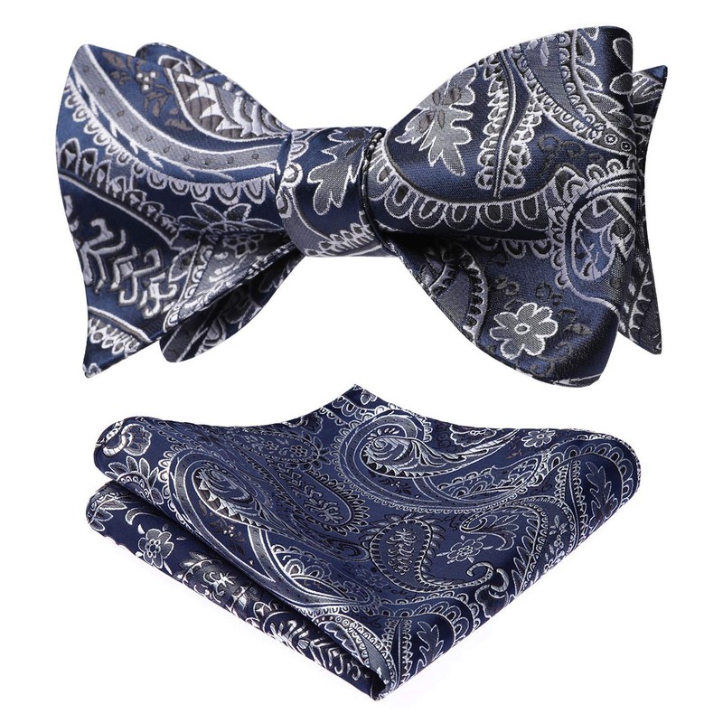 - Size : Bowties : 4.3 x 2.7 inches (11.0 x 6.8 cm), for neck size (Adjustable) : 13-18.5 inches (32-42.5 cm), total length : 39.4 inch (100 cm), handkerchief size : 10 x 10 inches (25 x 25 cm), crafts : paisley floral jacquard woven bow tie