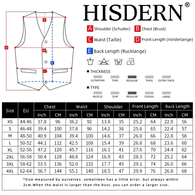 - Fashion Design: V neck Waistcoat with Five Buttons, Adjustable Back Buckle, Two Real Contrast Colour Side Pockets, One Real Breast Pocket. Both Classic and Stylish.