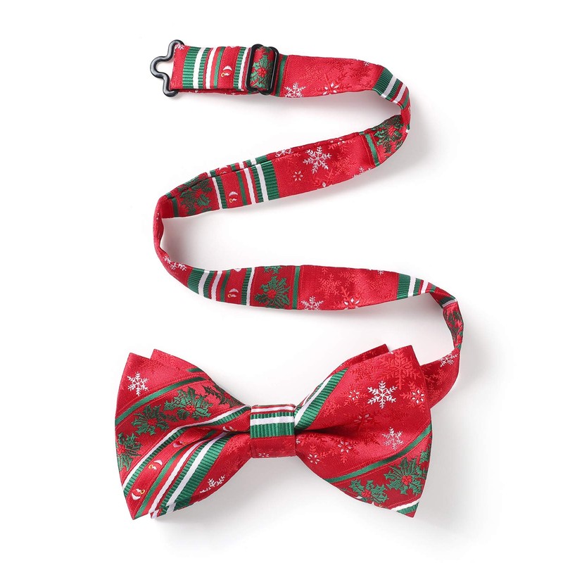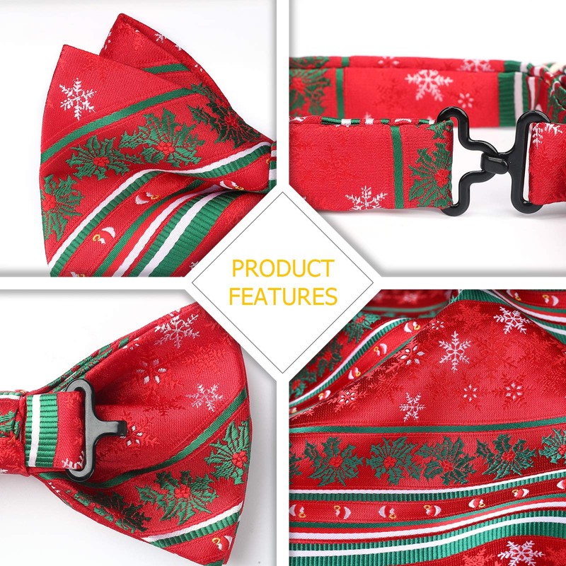 HISDERN Men's Christmas Classic Pre-Tied Bow Tie and Pocket Square Set, Wedding Party Accessories -