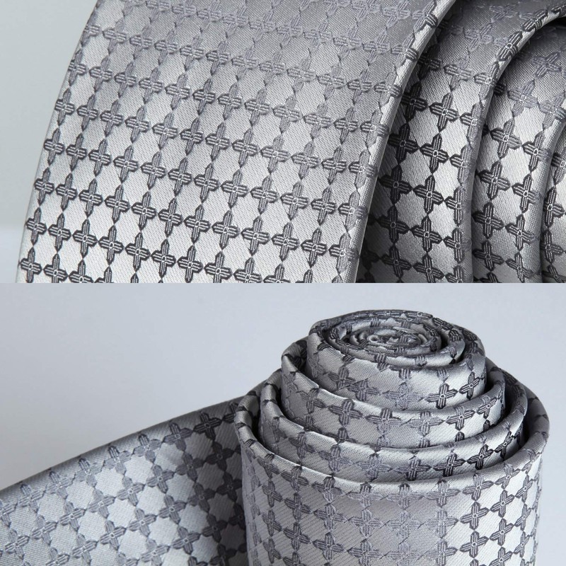HISDERN Men's Ties Plaid Polka Dots Ties and Pocket Squares Grey Classic Formal Business Party Woven Checkered Neckties Handkerchief Set