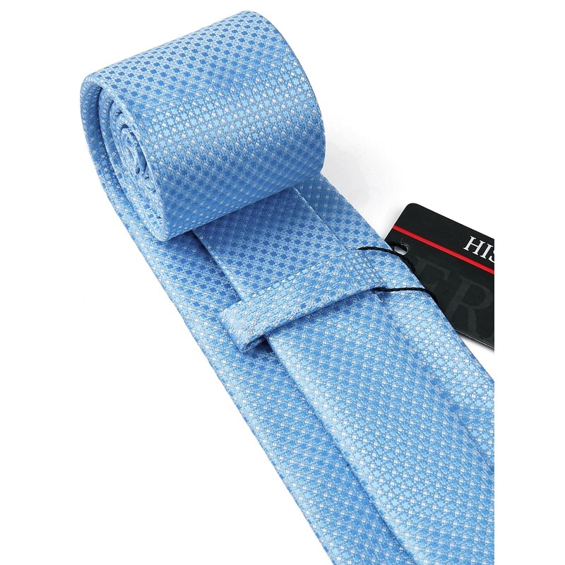 HISDERN Men's Wedding Ties and Pocket Square Solid Tie Cufflinks Set, Check Blue