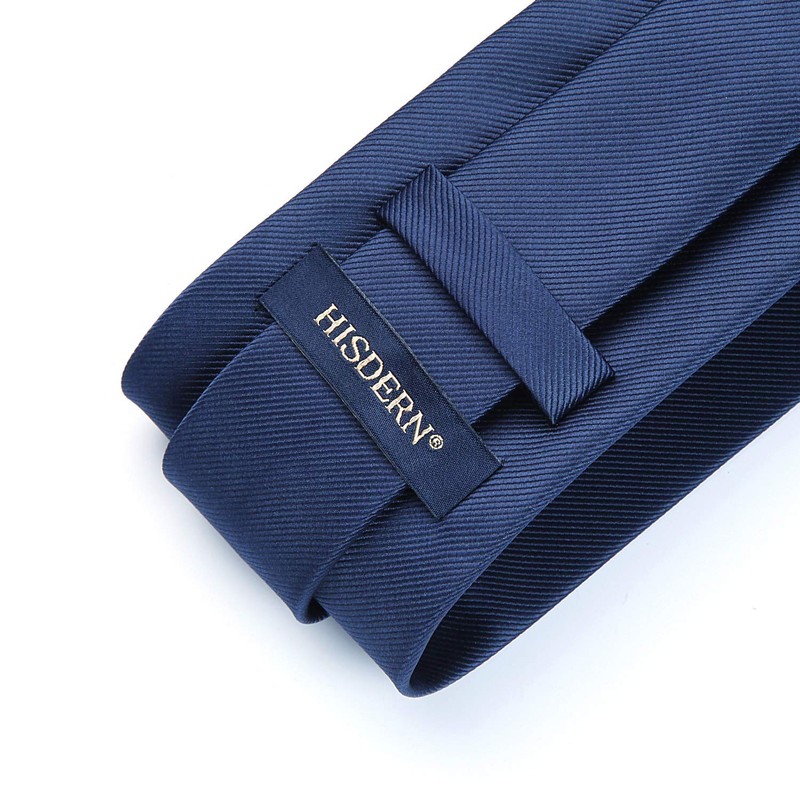 HISDERN Men's Wedding Ties and Pocket Square Tie Clip Set Plain in Various Colours, navy blue