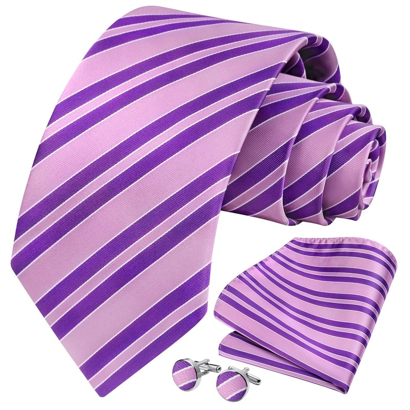 HISDERN Mens Ties Set Stripe Plaid Ties for Men and Pocket Square Cufflinks Formal Silk Necktie Wedding Business, 08-purple1, One Size
