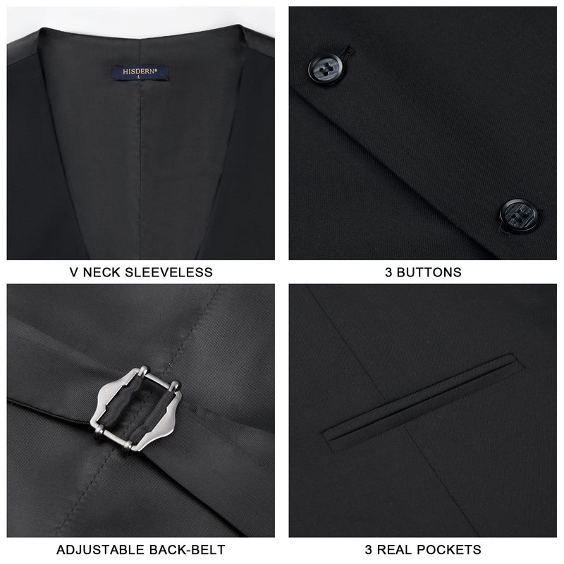 HISDERN Suit Vests for Men Formal Elegant Vest Cotton Plain V-Neck with Pockets Wedding Party Business, black