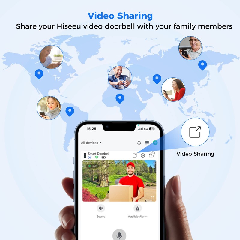 • Direct Video Calling & Multiple-User Sharing--- Hiseeu doorbell camera provides HD Two-way call audio no matter of anytime&anywhere you are. Once the visitor ring the bell, the direct video calling through the App would be received and you can communicate with visitors in real-time through the Vicohome app on your smartphone. The Hiseeu video doorbell supports multi-user sharing. You can share the security camera with your family members to view the image simultaneously.