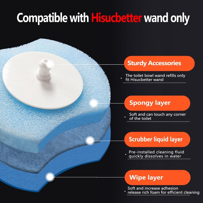 Hisucbetter Paquete de 48 cabezales de escobilla de inodoro desechables solo compatibles con Hisucbetter Wand [no compatible con otras varitas de inodoro de marca