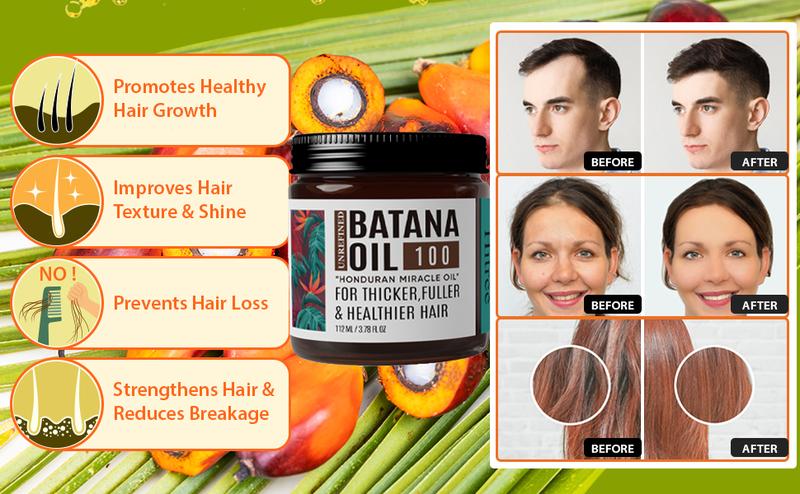 •Boosts Hair Growth - organic Batana Oil is extracted from the nuts of American Palm Tree that is sourced from Honduras, Experience noticeable hair growth with our Batana Oil. Its natural properties activate hair follicles, leading to thicker, fuller hair that radiates health and vitality.