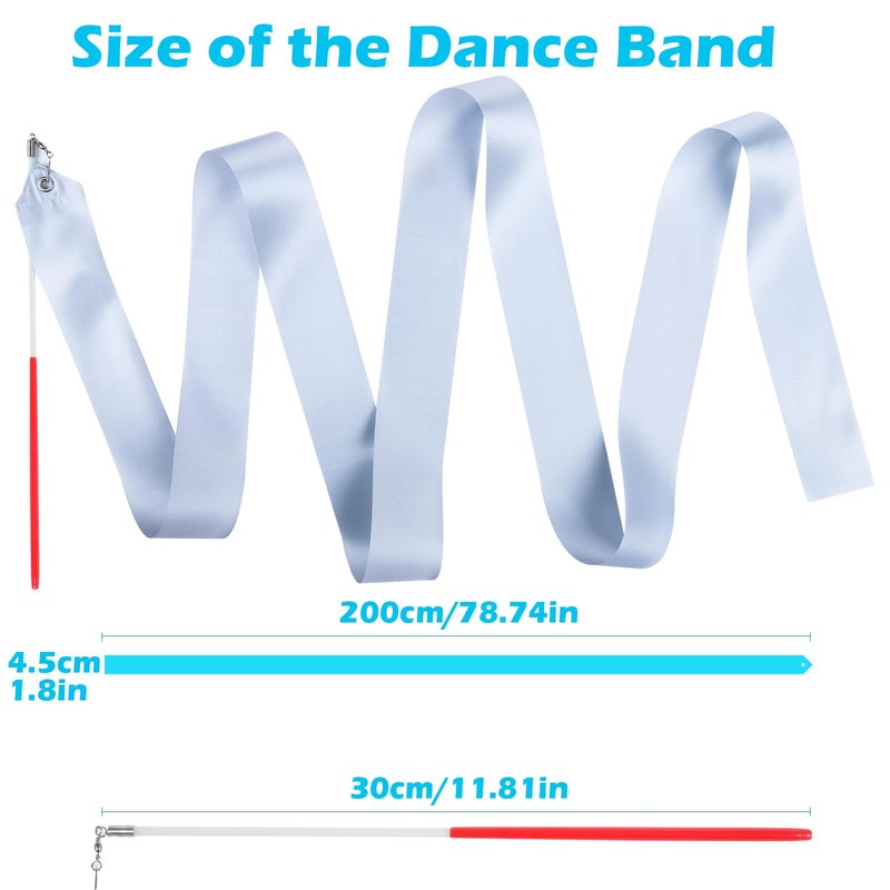 Our dancing ribbon is 6'56" (2 m) for streamers, 11.4"(29 cm) for non-slip rubber wand, perfect for kids and adults gymnastics performances, dancing, circus skill shows, fun exercises, or simply just for playing.